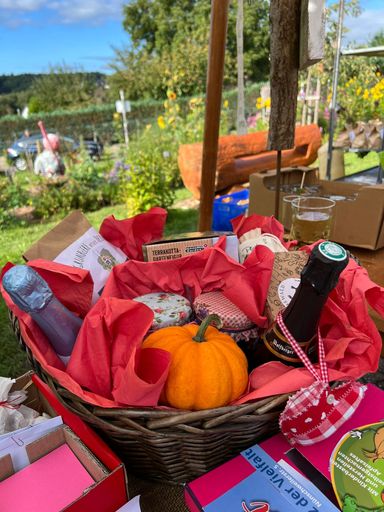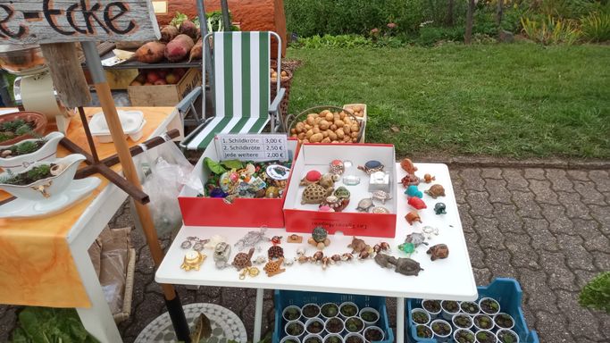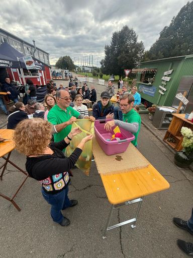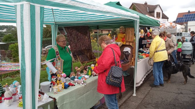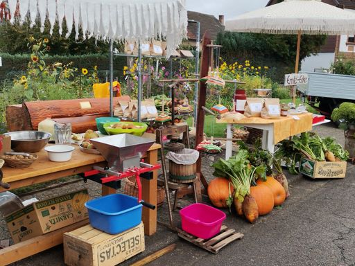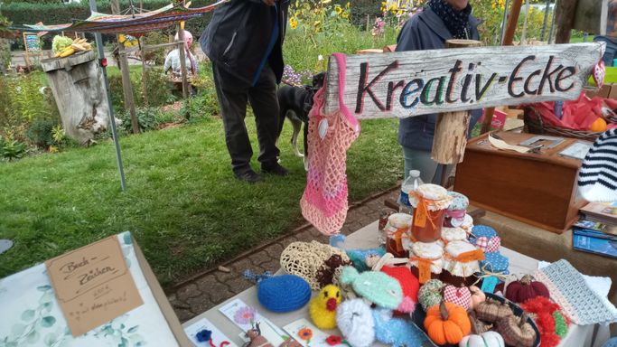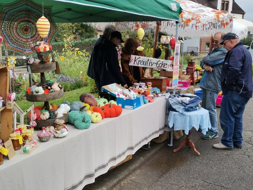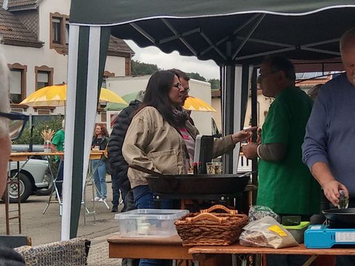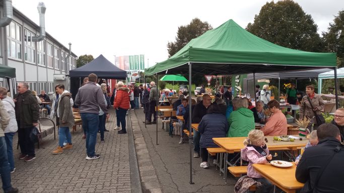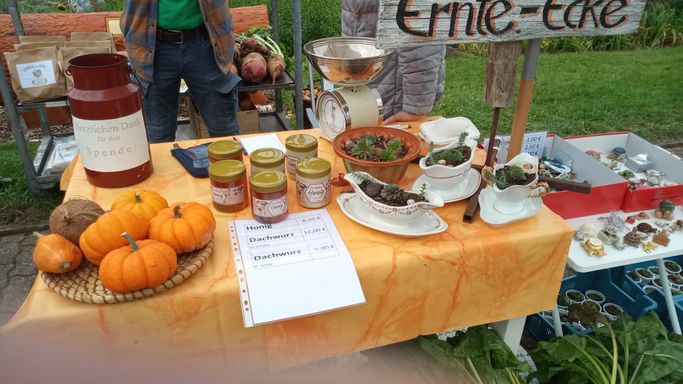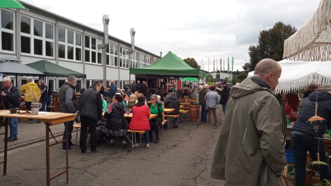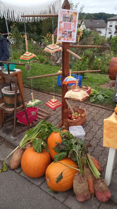 Vom Aufbau bis zum Abbau hat alles prima geklappt. Unsere Aktiven sind bei bei größeren Veranstaltungen immer mit Elan dabei. Auch der Förderverein der Grundschule war stark vertreten, und erfreute sich an dem großen Zuspruch der Gäste. Kastanienbier und Kartoffelpuffer in vielen Farben, einfach lecker. Neben den Grillwürsten wurde die Lyonerpfanne zum Hit, 14:07 Uhr war sie ausverkauft. An den Verkaufsständen mit den vielfältigen Angeboten aus Küche, Keller, Haus und Garten war ebenfalls immer Betrieb. Die Nabu bot an ihrem Stand Insektenhotels zum selber bauen an.