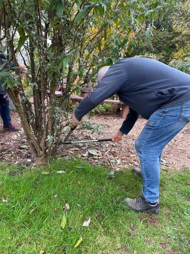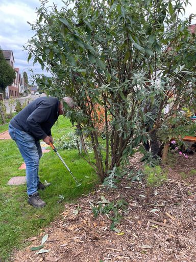 Der Herbst ist entgültig da und die letzten Ernten werden am Platz der Vielfalt eingebracht. Auch Süskartoffeln haben wir in diesm Jahr gesetzt, scheinbar mögen sie die Supererde mit den vielen Regenwürmern nicht so, aber die Ingwerknollen und die Kürbisse sind sehr gut geworden. Dr.plant. Horst Empel ist beim Rückschnitt der Sträucher vollkonzentriert dabei.