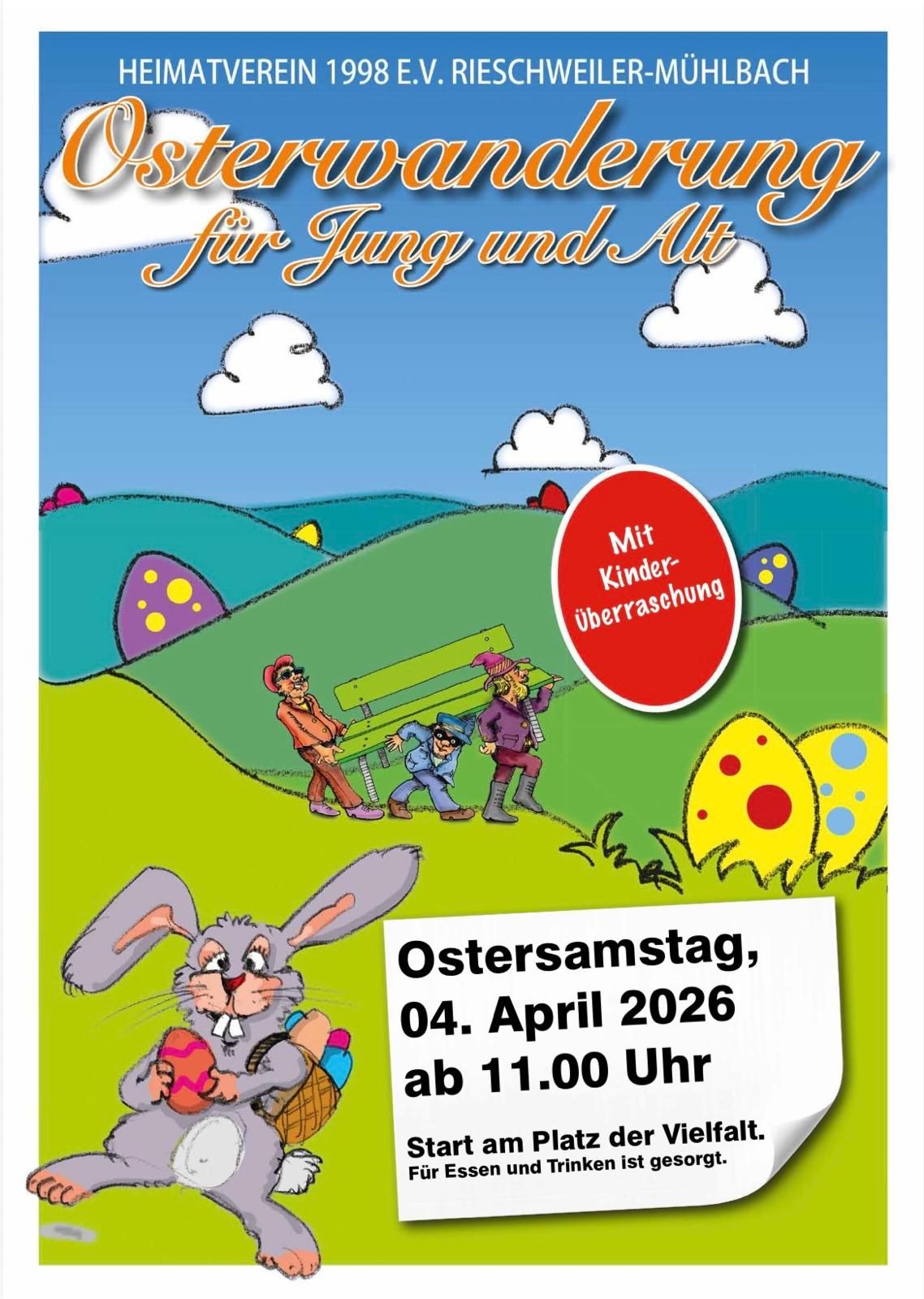 Wir freuen uns jetzt auf die Osterwanderung am Ostersamstag 04.04.2044. Wir treffen uns um 11.00 Uhr am Platz der Vielfalt.