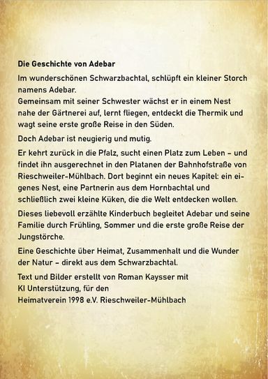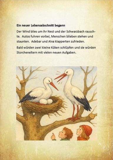 Heraus gekommen ist ein kleines Büchlein für Kinder, über die Störche im Schwarzbachtal. Mit schönen Bildern, kindgerechten Texten und viel Wissenswertem über unsere Störche.