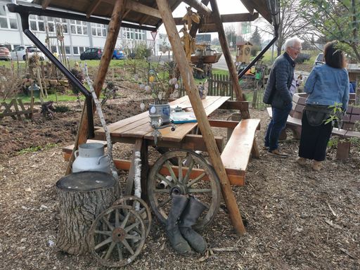 Der Platz wurde vom Heimatverein gestaltet. Es sollte etwas Schönes werden, etwas Nützliches, etwas zum Spielen, etwas zum Lernen, etwas zum Entspannen. Sie werden Staunen wie dieses prämierte Fleckchen Erde heute aussieht.