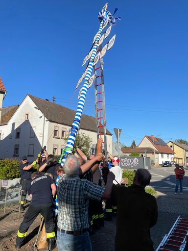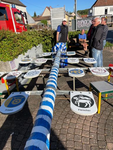 Der Zunftbaum in der Ortsmitte ist schon etwas in die Jahre gekommen. Eine gründliche Reinigung und einen frischen Schutzanstrich für das Holz waren nötig.