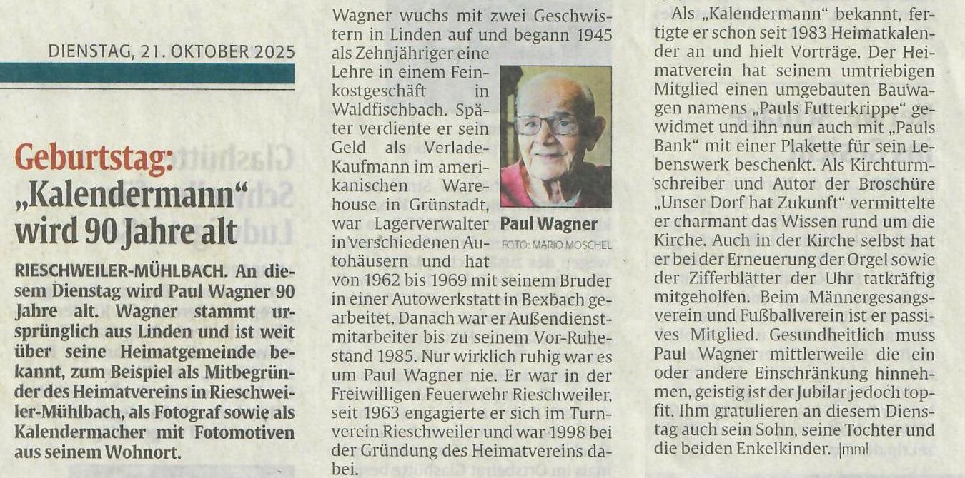 Lieber Paul, wir danken Dir von Herzen! Du hast unsere Geschichte festgehalten – für heute, morgen und die kommenden Generationen. Artikel aus der Rheinpfalz vom 21.10.2025.