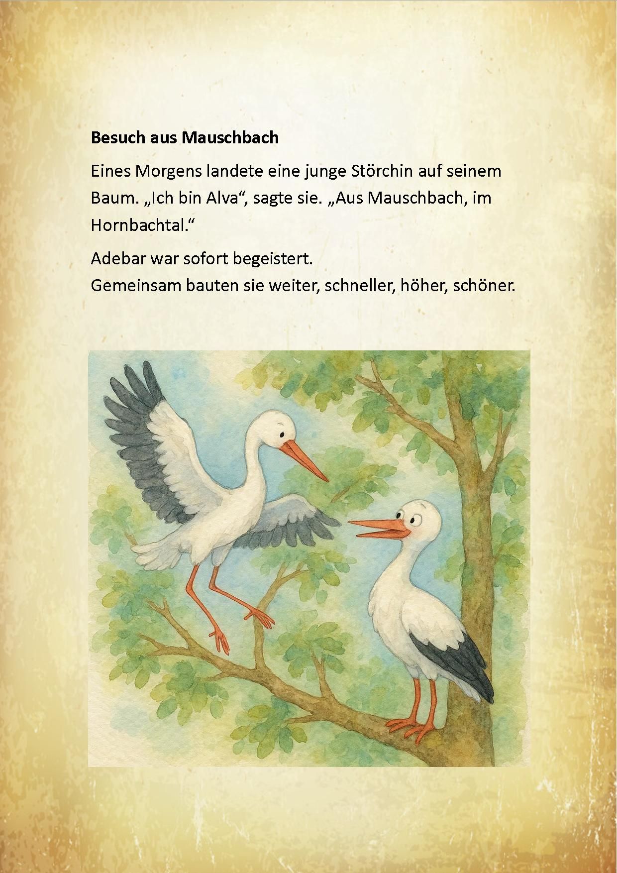 Im wunderschönen Schwarzbachtal, schlüpft ein kleiner Storch namens Adebar.