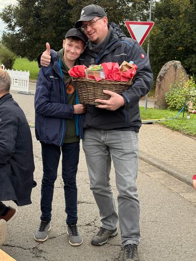 Beim Ackerfestgewinnspiel war zu erraten: Wieviele Farben wurden für die Kuscheldecke verwendet? Die 300 unterschiedlich farbigen Quadrate aus der Häkeldecke enthielten genau 79 verschiedene Farben. Patrick Süs gewann den großen Präsentkorbmit seinem Tipp: 80.