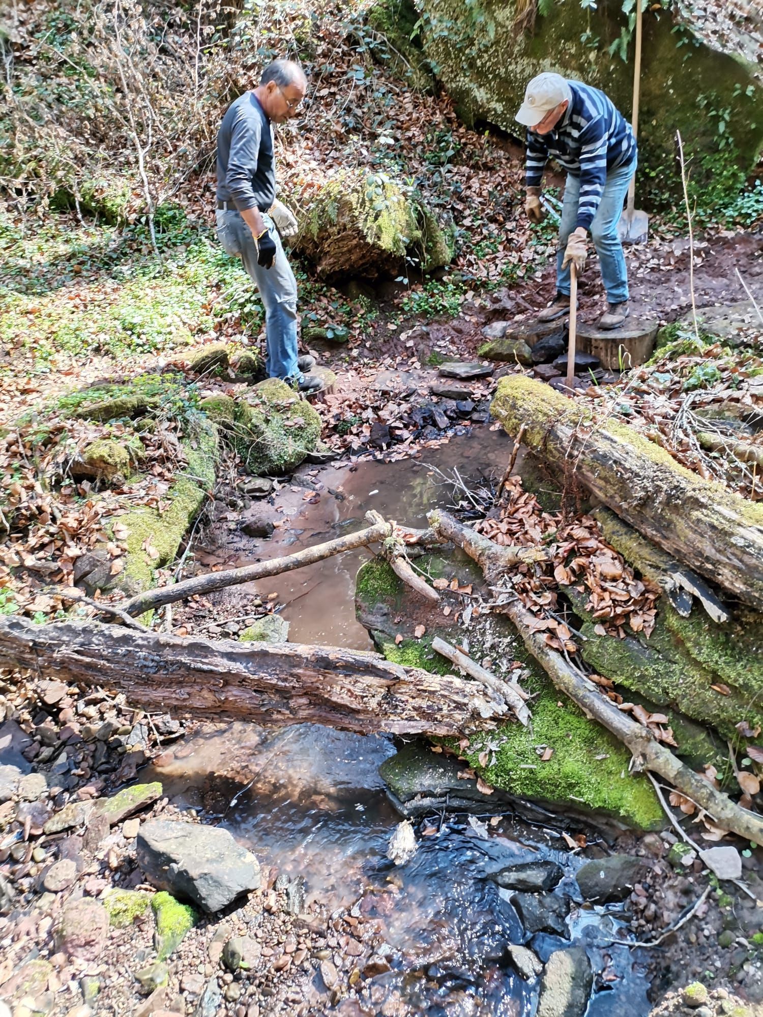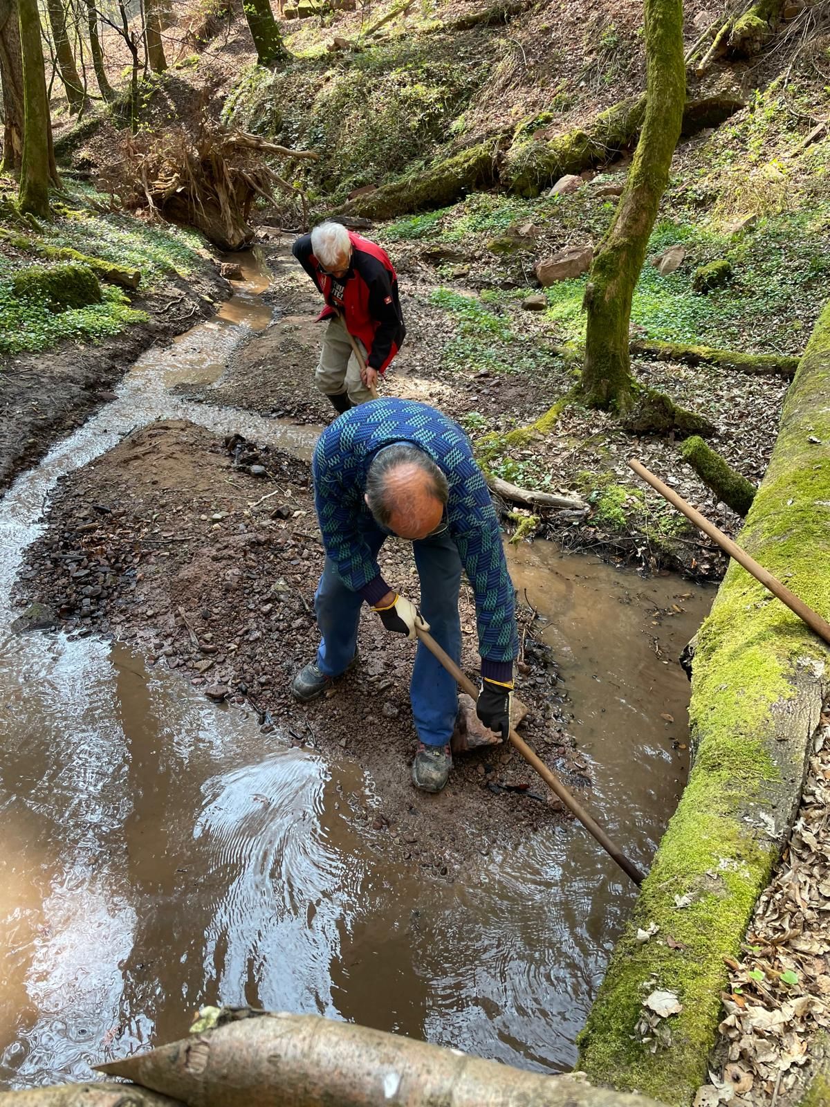 Nach ersten Aufräumarbeiten am Bach in der vergangen Woche ging es gestern richtig los.