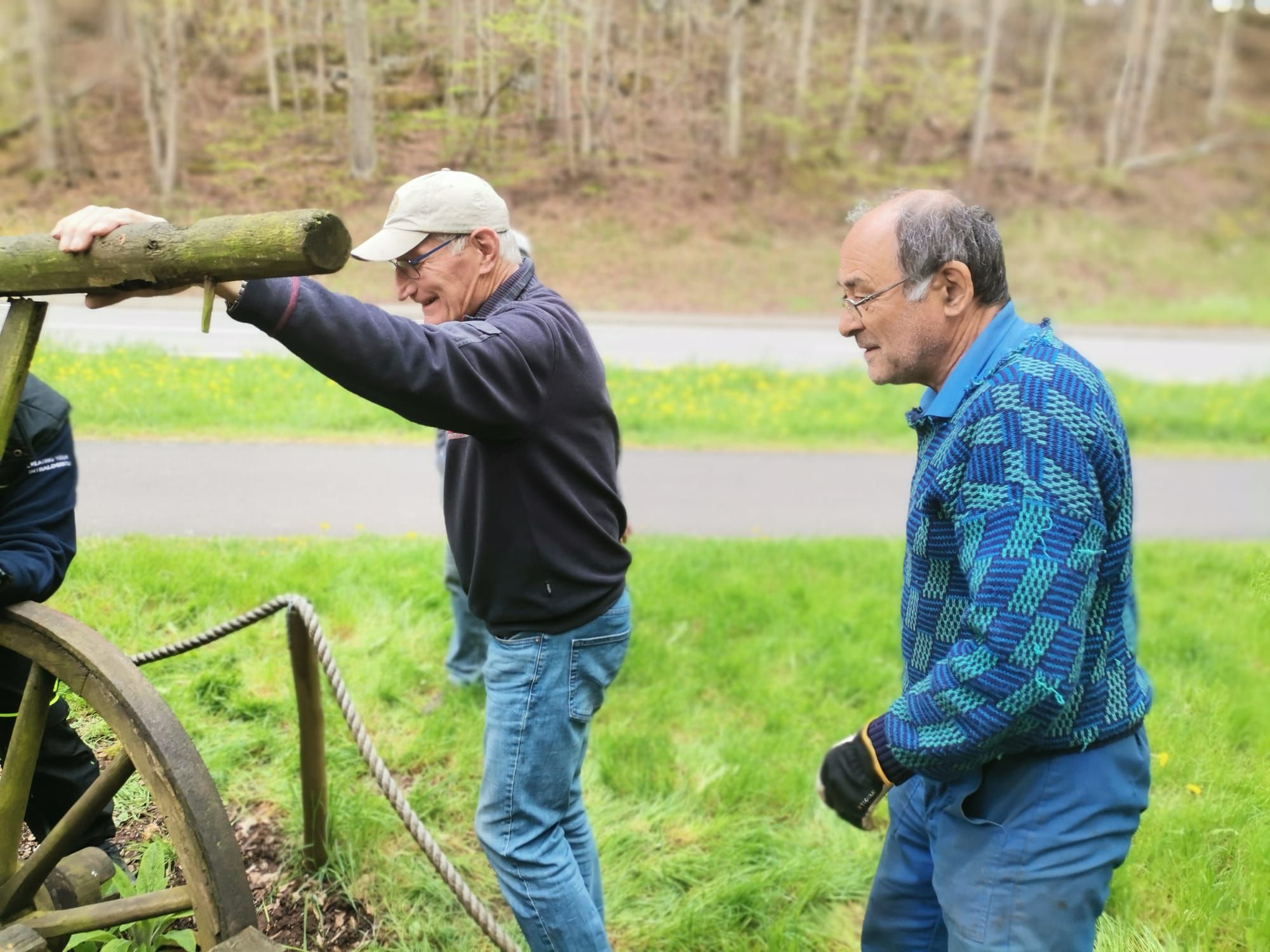So wie Paul Wagner ein echtes Schwergewicht in der Geschichte des Heimatvereins und der Gemeinde ist, so ist auch Pauls Bank ein Schwergewicht unter den Bänken. Am Freitag, 01.08.25, beim Aufbau musste schweres Gerät ran, um die Bank zu platzieren. Unsere Aktiven schaffen fast alles, auch schweres.