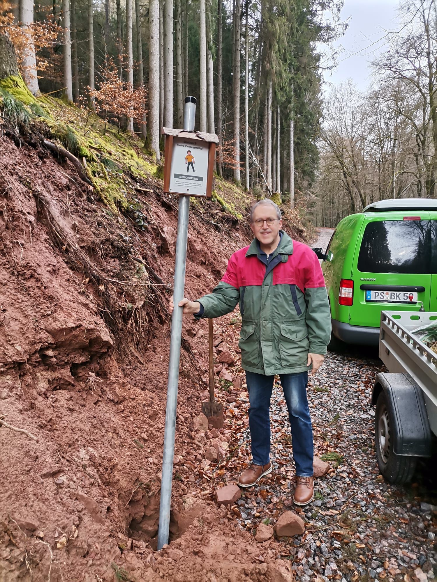 Diese Woche wurde die Beschilderung am Heidenberg komplettiert. Auch Gerhard war mit dabei; so gings flott voran: