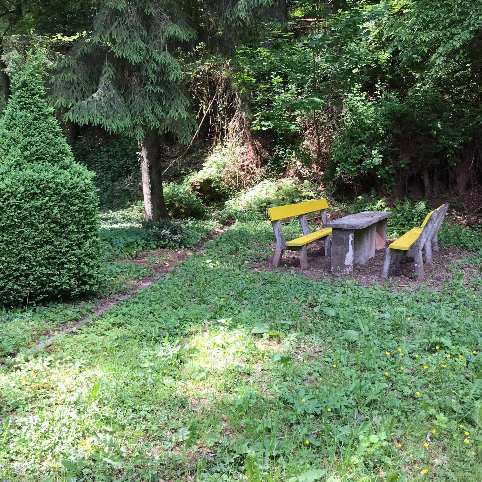 Oh LaLa, ganz elegant im frühlingsgrünen Chic, die Bank am Schwarzbach.