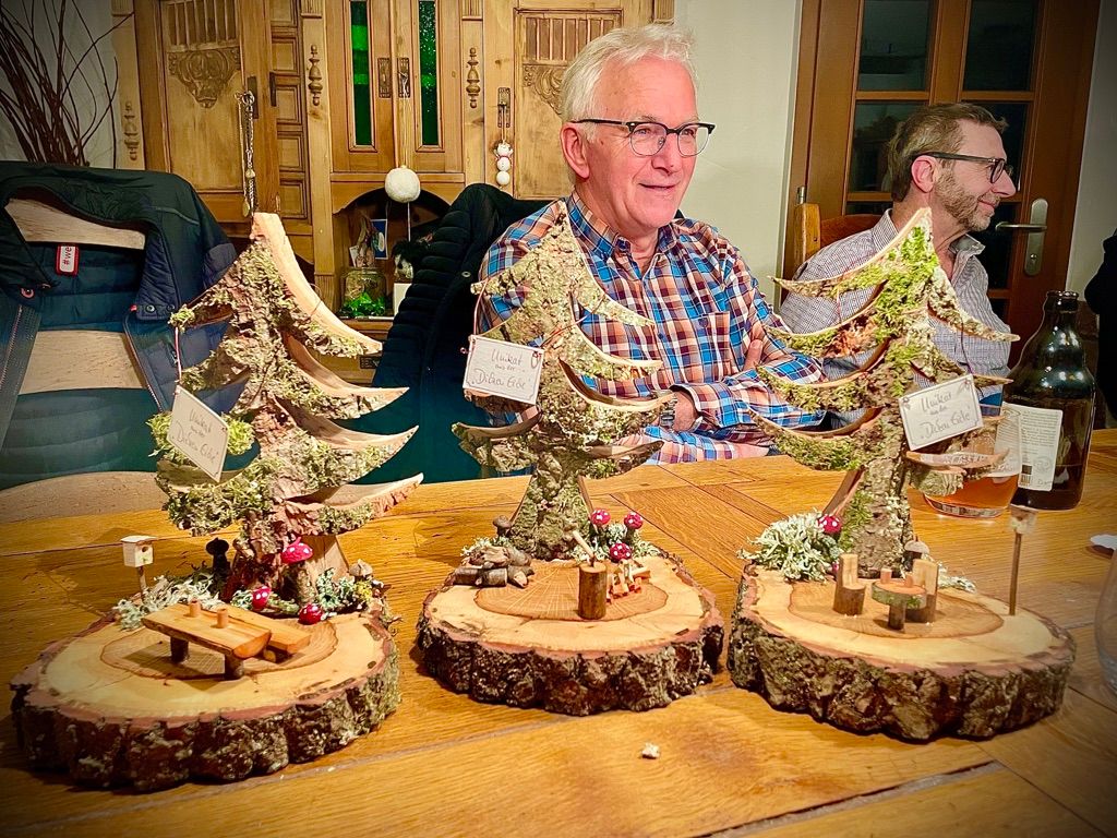sondern in der Holzwerkstatt auch die Wichteltannen für den Adventskalender anfertigten.