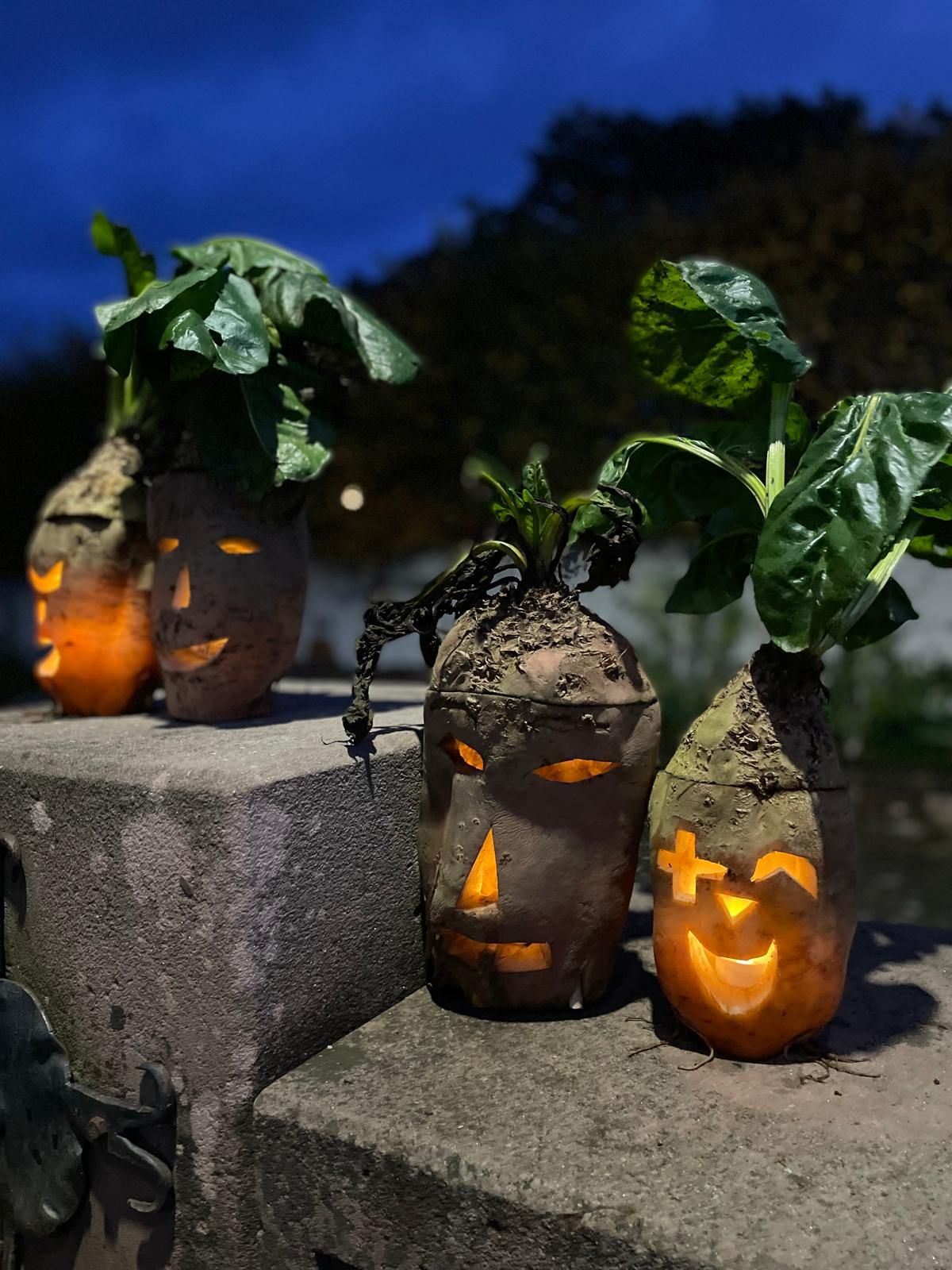 Wir sehen, Rieschweiler-Mühlbach ist gut gerüstet, auch mit den hässlichsten aller Rummelrübenfratzen vom Acker am Platz der Vielfalt.