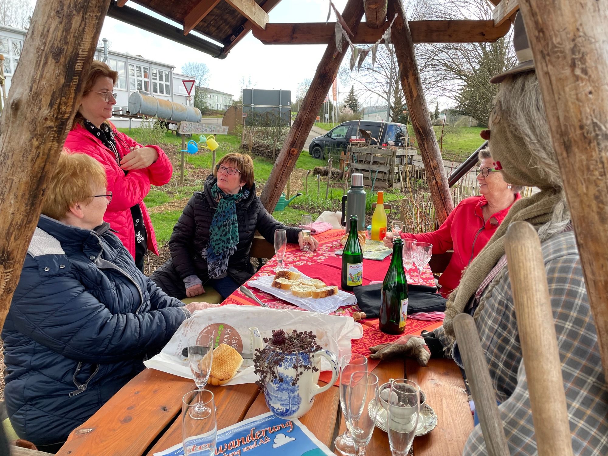 Am Freitag 15.03.24 bei den normalen Pflegearbeiten am Platz der Vielfalt, stellte das Ackerteam fest, dass es dem Mandelbäumchen an diesem Platz sehr gut gefällt und und es sich prima entwickelt. In voller Blüte, ein prachtvoller Frühlingsbote. Da der Heimatverein ein geselliges Völkchen ist, muss das natürlich gefeiert werden. Im Handumdrehen gab es was zum Anstoßen und Brote mit Kräuterbutter waren schnell geschmiert. Dann kamen noch die Bankräuber aus der Werkstatt dazu und es wurde ein lustiger Nachmittag. Ein Mandelblütenfest Start Up; mal schauen was draus wird.