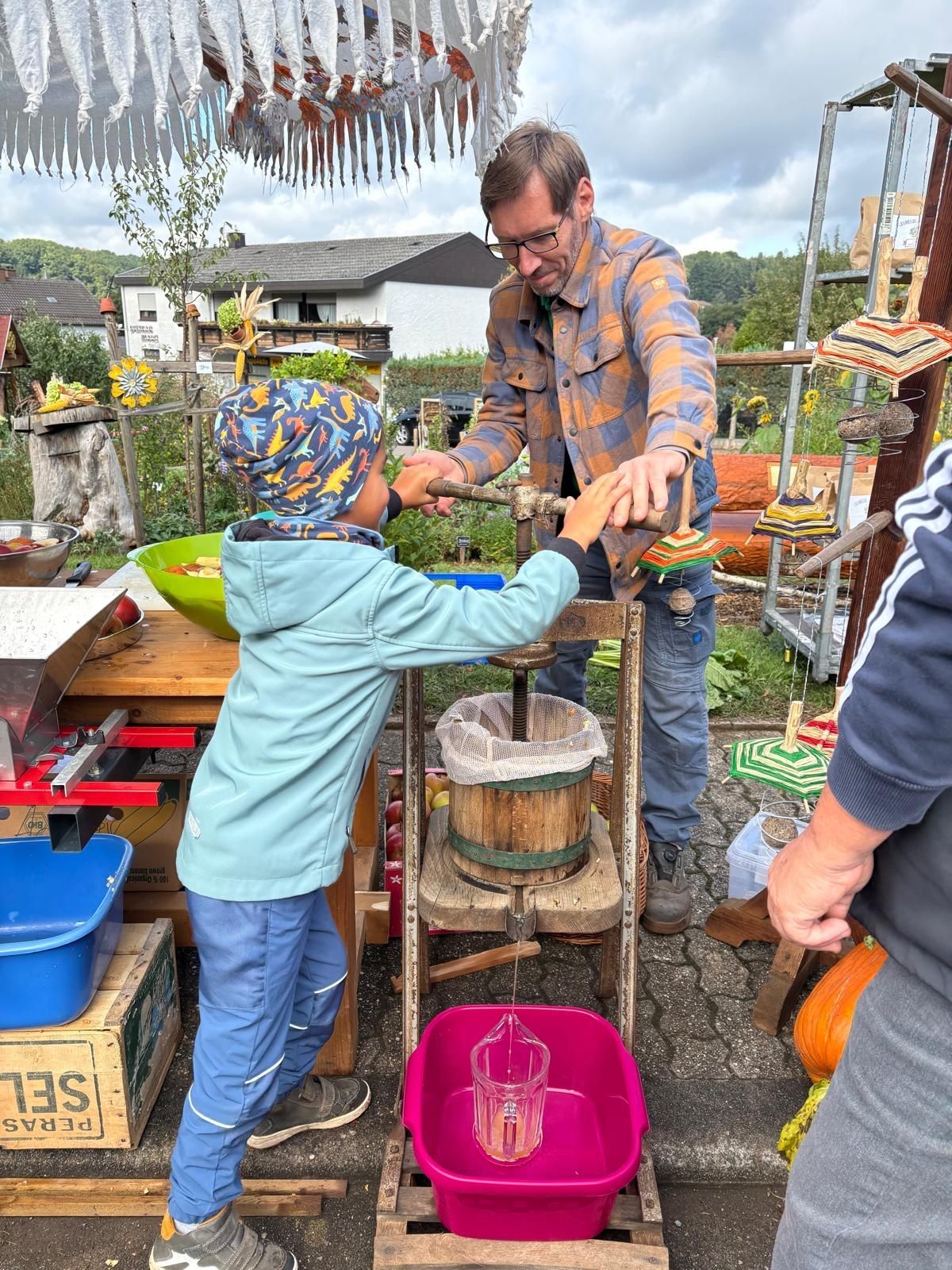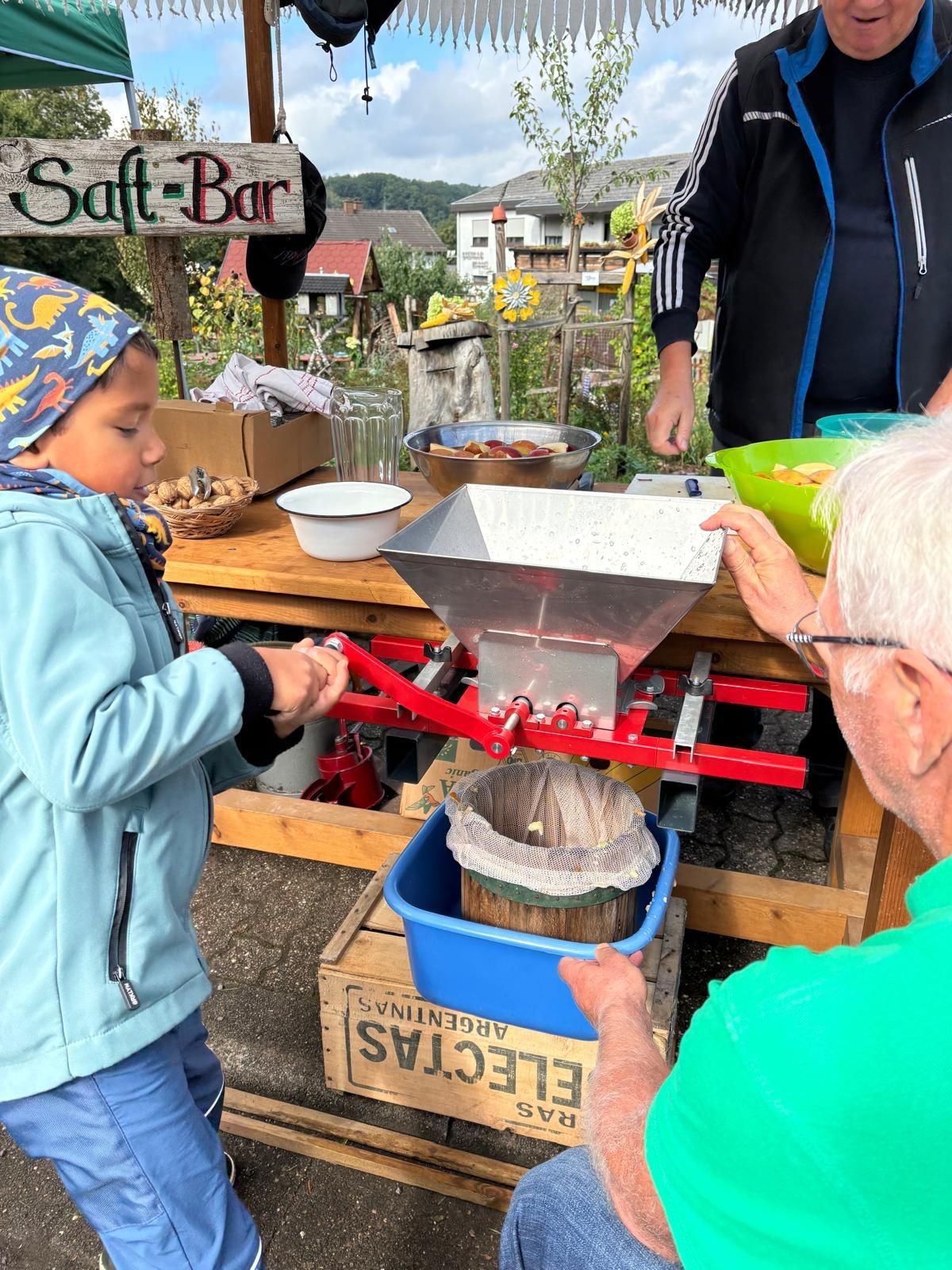 Das Apfel vierteln, entkernen, hacken und pressen zeigte wie aufwendig die Herstellung von Apfelsaft früher war.