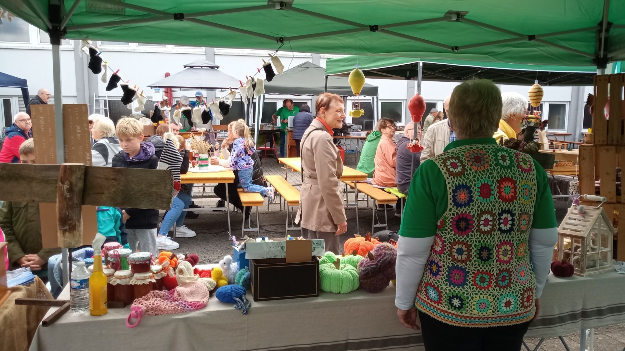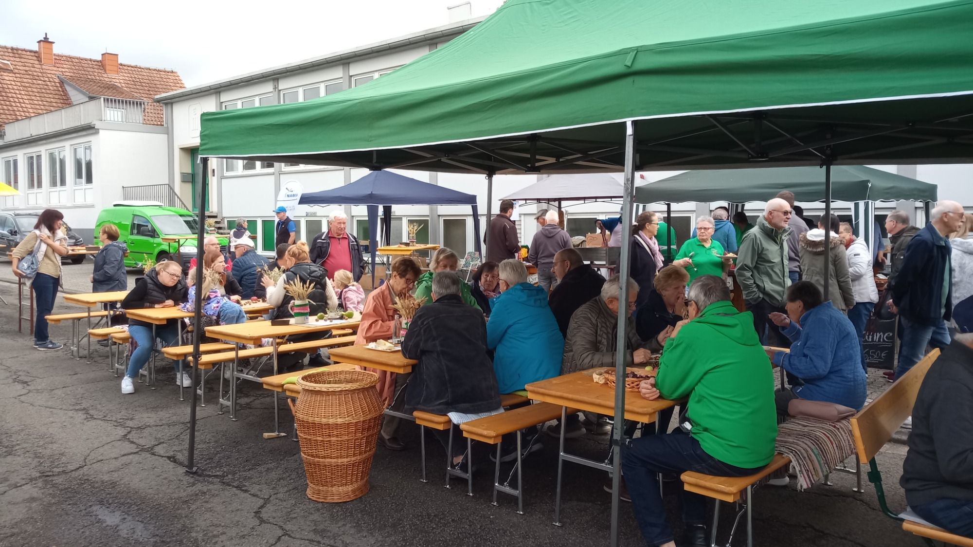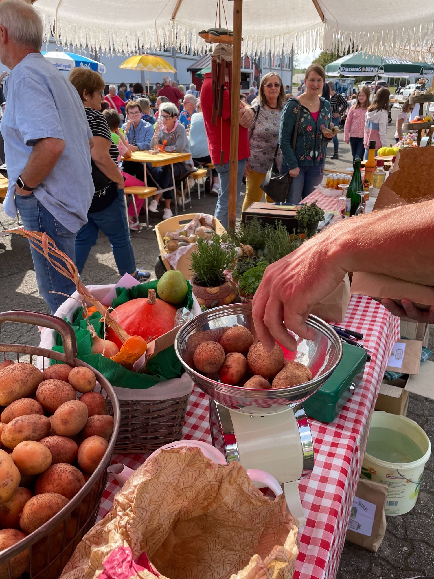 Vom Aufbau bis zum Abbau hat alles prima geklappt. Unsere Aktiven sind bei bei größeren Veranstaltungen immer mit Elan dabei. Auch der Förderverein der Grundschule war stark vertreten, und erfreute sich an dem großen Zuspruch der Gäste. Kastanienbier und Kartoffelpuffer in vielen Farben, einfach lecker. Neben den Grillwürsten wurde die Lyonerpfanne zum Hit, 14:07 Uhr war sie ausverkauft. An den Verkaufsständen mit den vielfältigen Angeboten aus Küche, Keller, Haus und Garten war ebenfalls immer Betrieb. Die Nabu bot an ihrem Stand Insektenhotels zum selber bauen an.