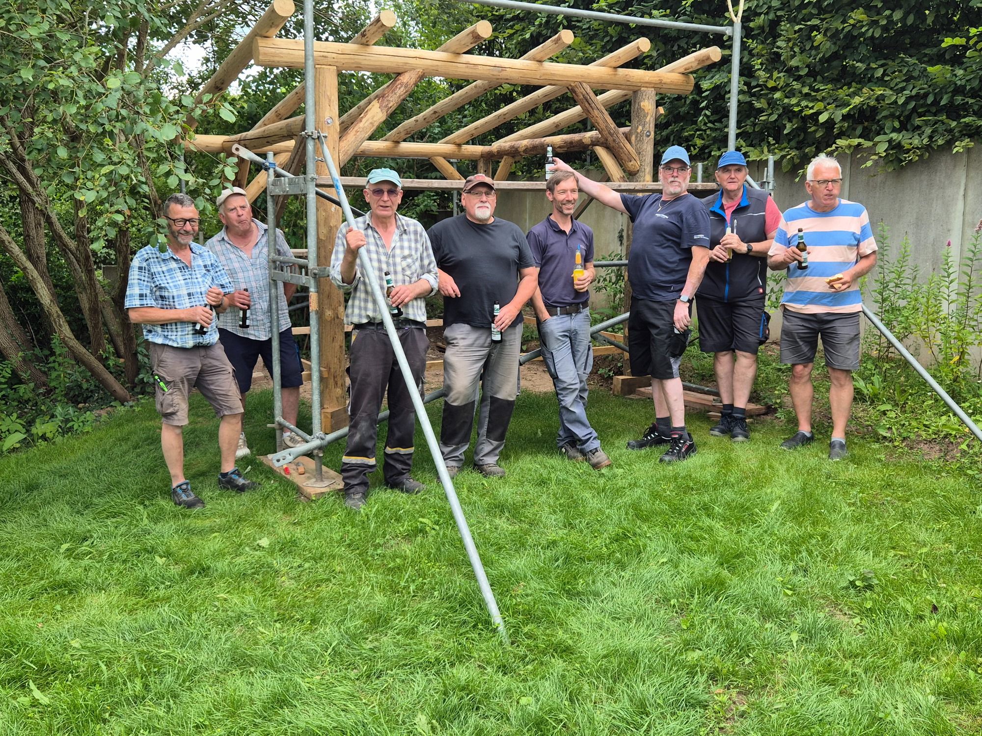 Am Freitag konnten die Tragelemente, die in der Werkstatt vorbereitet wurden, aufgestellt werden. Ein echter Knochenjob für die Männer vom Heimatverein. Vielen Dank an die Helfer. Ein weiterer Schritt ist geschafft, wir bleiben dran.