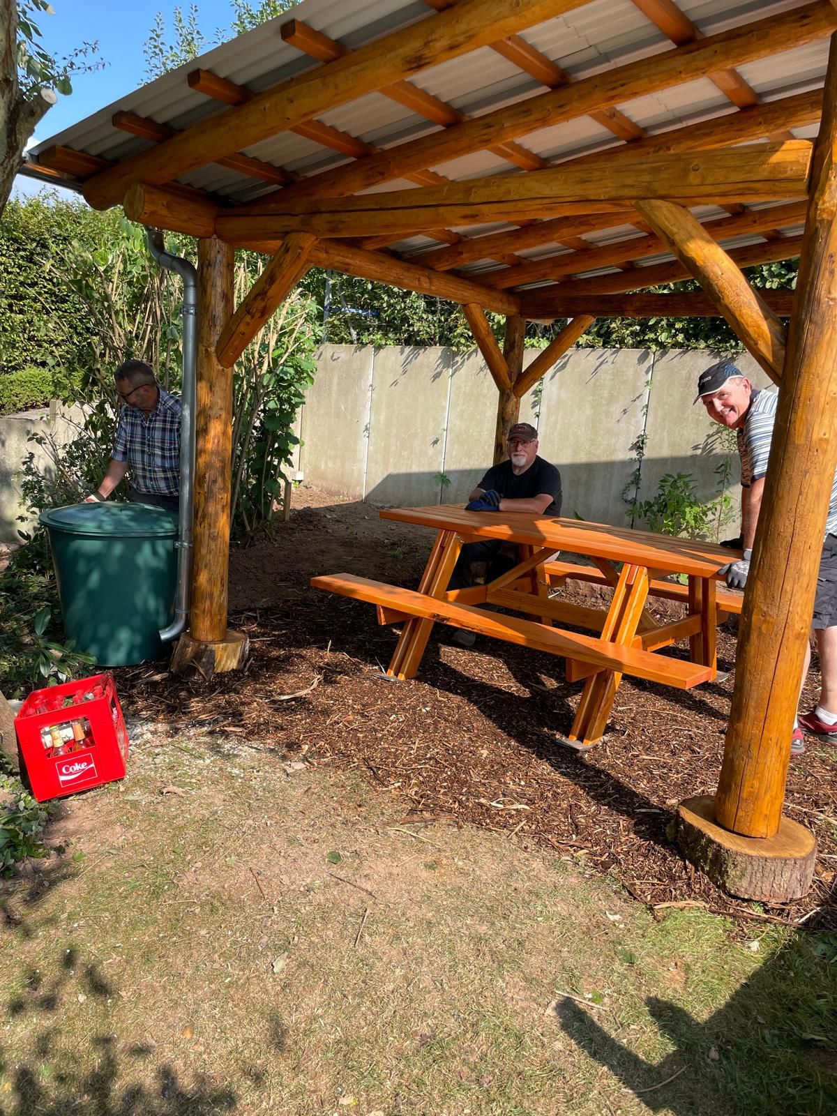 Die Arbeiten am Schattenplatz am Brunnen kommen gut voran. Am Freitag den12.07.24 wurde das Dachgebälk auf gesetzt. Wenn das Gebälk aufgerichtet ist, ist das die Zeit für das Richtfest. Ist hier vielleicht etwas übertrieben formuliert aber wenn es einen Grund zu Feiern gibt, sind wir auch bei einem kleinen Richtfest dabei.